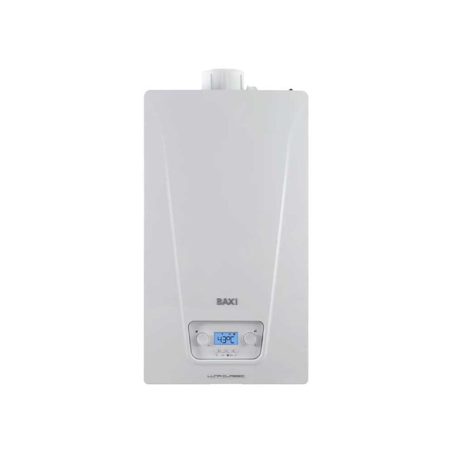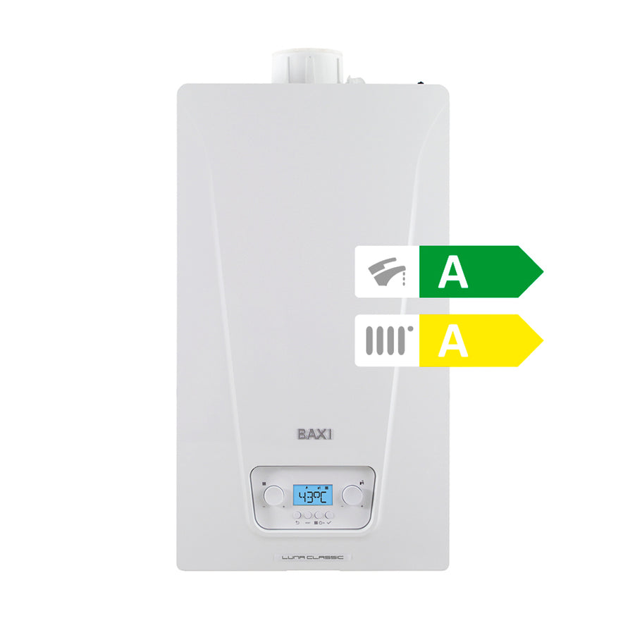 Caldaie funzionanti a metano trasformabili a GPL e ad aria propanata mediante apposita regolazione (kit di trasformazione non necessario). Nuovo scambiatore di calore in acciaio inossidabile monospira, dotato di sezioni con ampi passaggi d'acqua per una maggiore efficienza termica stagionale. Efficienza energetica stagionale al 94% grazie all'evoluta tecnologia applicata. Classe A+ per i modelli Luna Classic 24/28 con Baxi Mago e sonda esterna (come accessori)