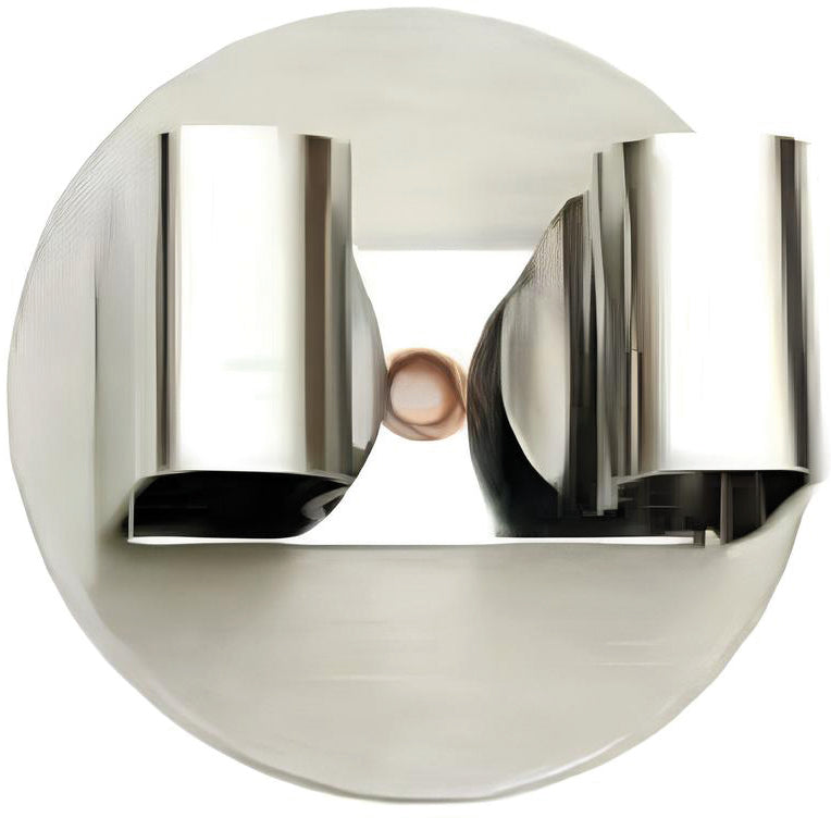 In acciaio inox, con fori per fissaggio al muro.
