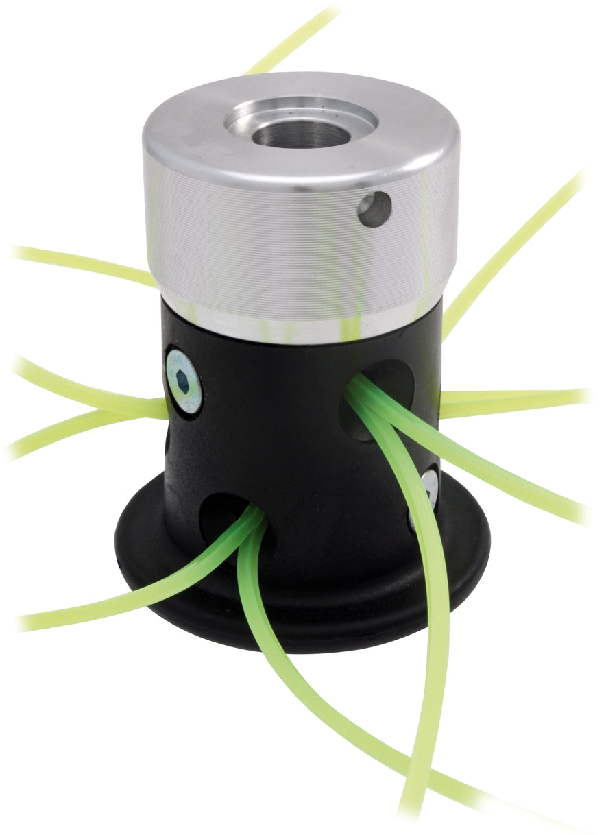 In plastica alta resistenza e alluminio, utilizzabile con 12 fili, ghiera filettata in alluminio, taglio ad effetto mulching, ideale per tutti i tipi di decespugliatore (superiori a 30 cc.), fili inclusi.