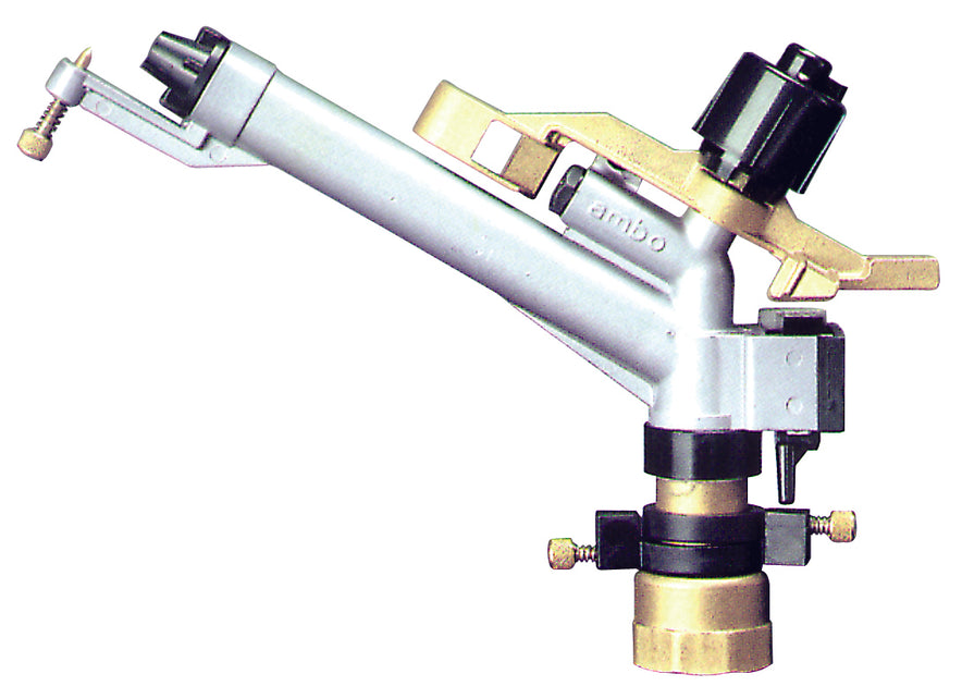 In ottone e polipropilene, 2 getti, ugelli intercambiabili Ø mm. 8÷18, gittata max mt. 29, superficie max irrigata mq. 2.640.