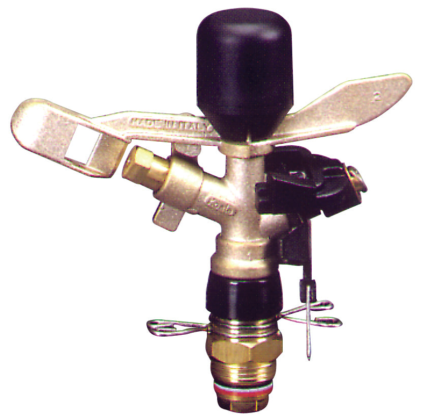 In ottone e polipropilene, 1 getto, ugelli intercambiabili Ø mm. 3,5÷5, gittata max mt. 16,5, superficie max irrigata mq. 854.