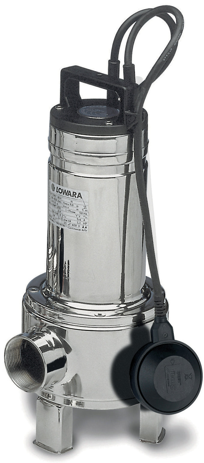Per acque cariche, con girante “Vortex”. Per svuotamento fosse biologiche, pozzi di raccolta, ecc. Passaggio corpi solidi mm. 35 (DOMO 7 VX) e mm. 50 (DOMO 10 VX), corpo pompa e cassa motore in acciaio inox, con galleggiante.