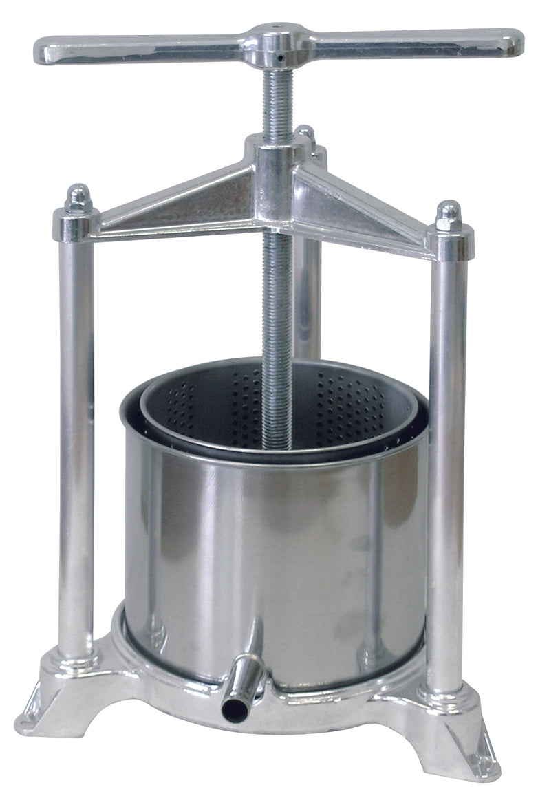 In alluminio brillantato, raccoglitore in acciaio inox. Per la preparazione di conserve, premute di frutta, liquori ecc.