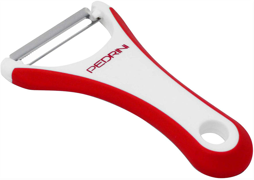 Lama affilata oscillante, bordi in gomma antiscivolo. Ideale per patate, asparagi, sedano, carote, zucchine.
