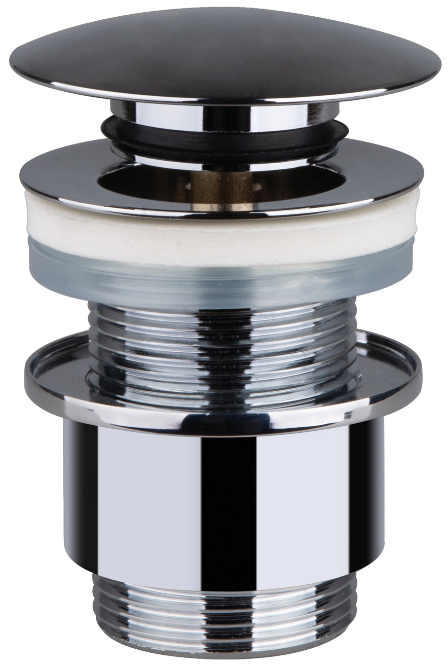 In ottone cromato, tipo a scatto click-clack, tappo cromato, per lavabo e bidet.