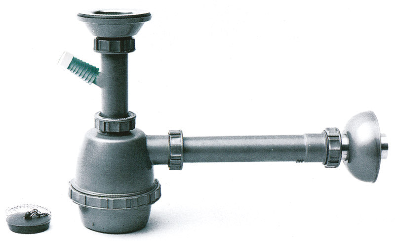 SIFONE IN PLASTICA A 1 VIA CON PILETTA E ATTACCO LAVATRICE mis. 1.1/4