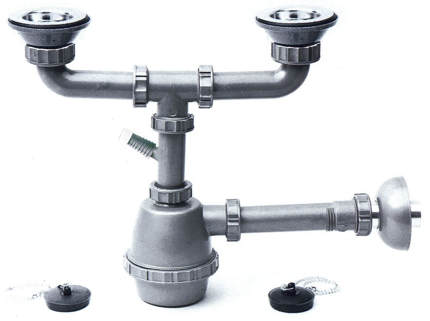 SIFONE IN PLASTICA A 2 VIE CON PILETTE E ATTACCO LAVATRICE mis. 1.1/4
