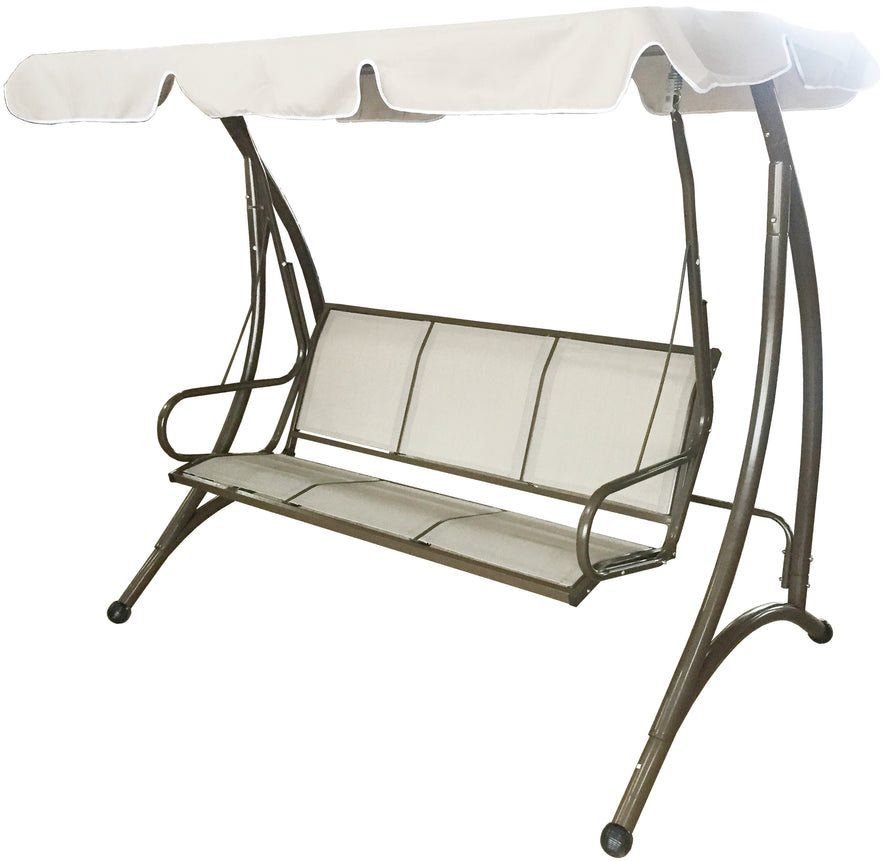 Struttura in acciaio verniciato con tubolare Ø mm. 50, seduta in textilene e tendalino in poliestere, col. ecrù.