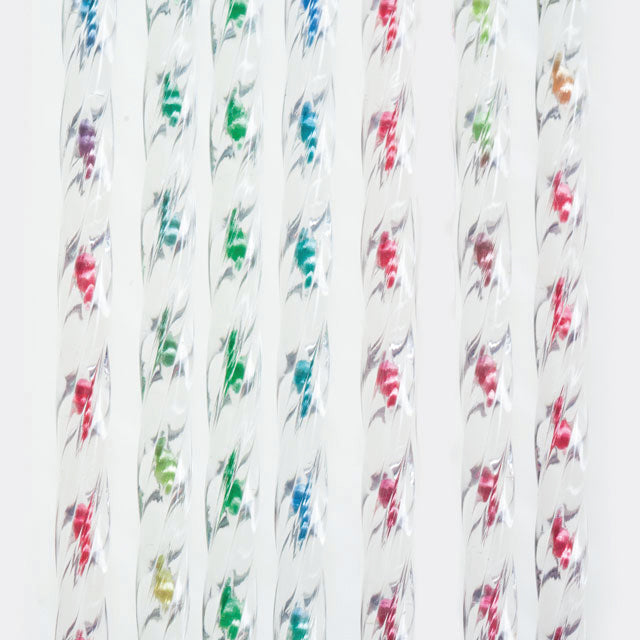 Profilato in pvc cristallo formato da 4 cilindretti trasparenti, anima centrale in poliestere colorato, si adatta agli ambienti che richiedono una particolare luminosità, multicolor a 4 colori.