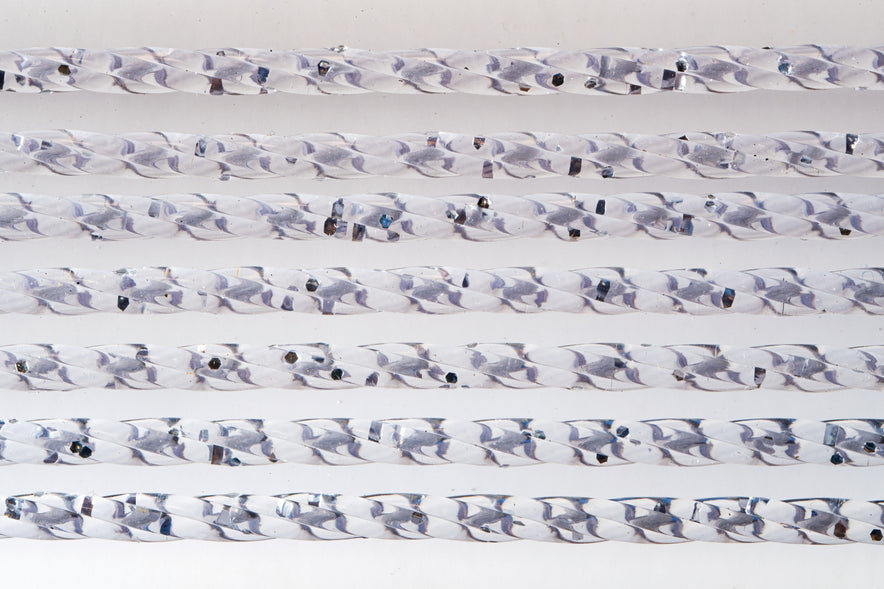 Profilato in pvc cristallo formato da 4 cilindretti trasparenti, anima centrale in poliestere colorato, si adatta agli ambienti che richiedono una particolare luminosità.