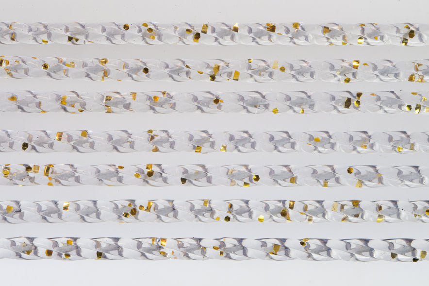 Profilato in pvc cristallo formato da 4 cilindretti trasparenti, anima centrale in poliestere colorato, si adatta agli ambienti che richiedono una particolare luminosità.