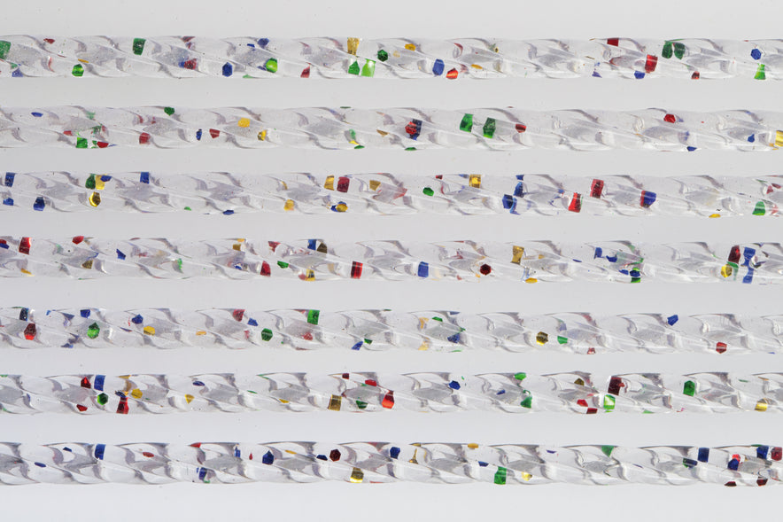 Profilato in pvc cristallo formato da 4 cilindretti trasparenti, anima centrale in poliestere colorato, si adatta agli ambienti che richiedono una particolare luminosità.