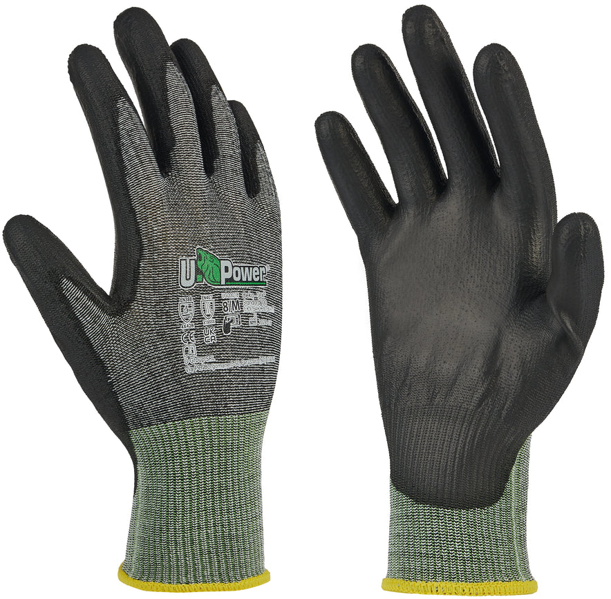 U-Power GUANTI DA LAVORO ANTITAGLIO B SAMBA IN NYLON/PU- FOAM Col. Grigio/Verde tg. 8