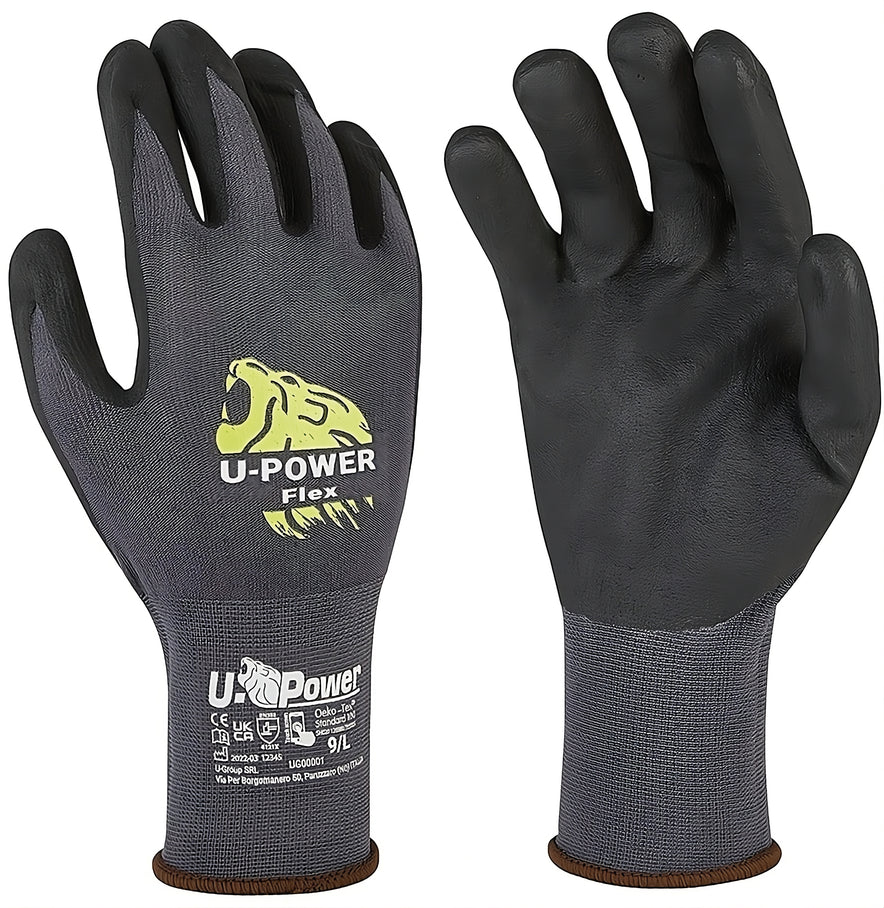 U-Power GUANTI DA LAVORO FLEX IN NYLON/NITRILE Col. Grigio/Nero tg. 9