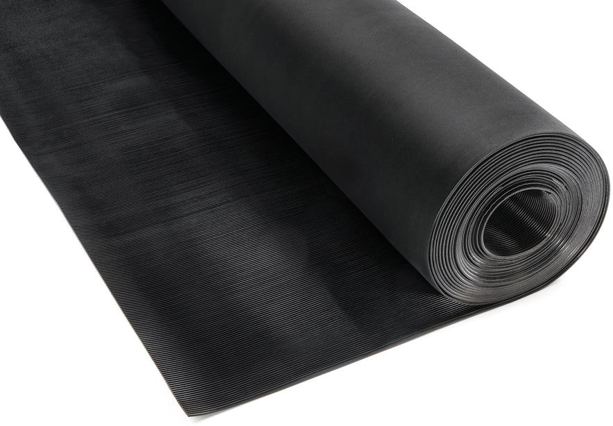 Effetto millerighe, resistente e durevole, ideale in ambito industriale, commerciale ed edile. Molto resistente alle sollecitazioni meccaniche e alle intemperie, flessibile e tagliabile in qualsiasi formato. Col. nero.