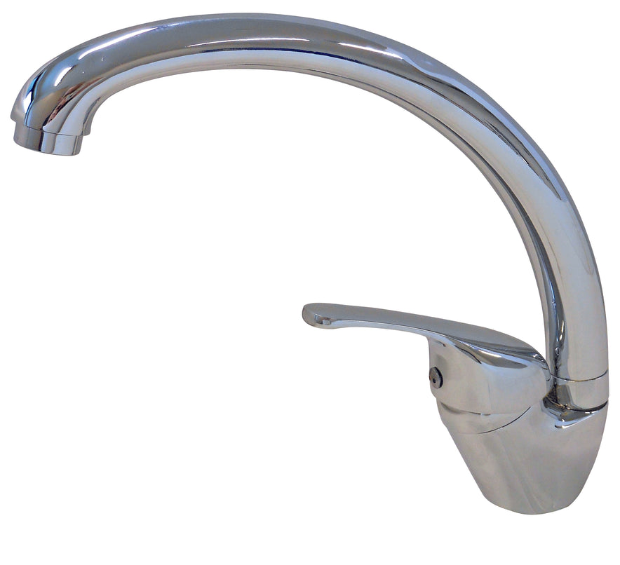 In ottone cromato, aeratore, bocca girevole, cartuccia Ø mm. 40. Conforme ai D.M. 21/03/1973.