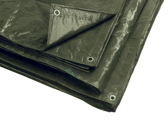 In polietilene, antistrappo, rinforzato lungo i bordi e con occhielli su tutti i lati.